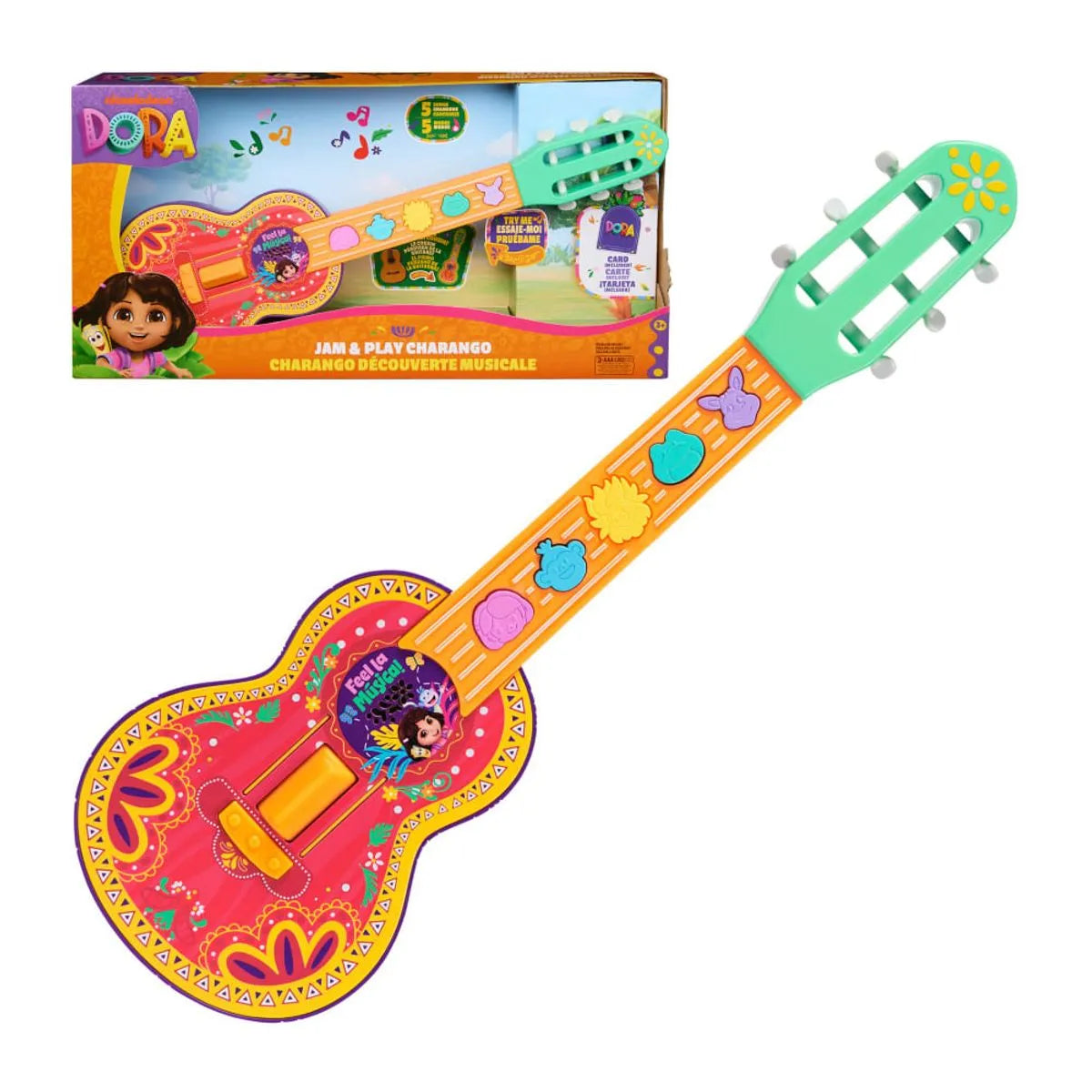• العب مثل دورا: جيتار شارانغو الخاص بدورا يشبه تمامًا الجيتار في البرنامج! طوله 19 بوصة (48.3 سم)، وهو بحجم الأوكوليلي تقريبًا — سهل الحمل ومثالي للعب التظاهر الموسيقي