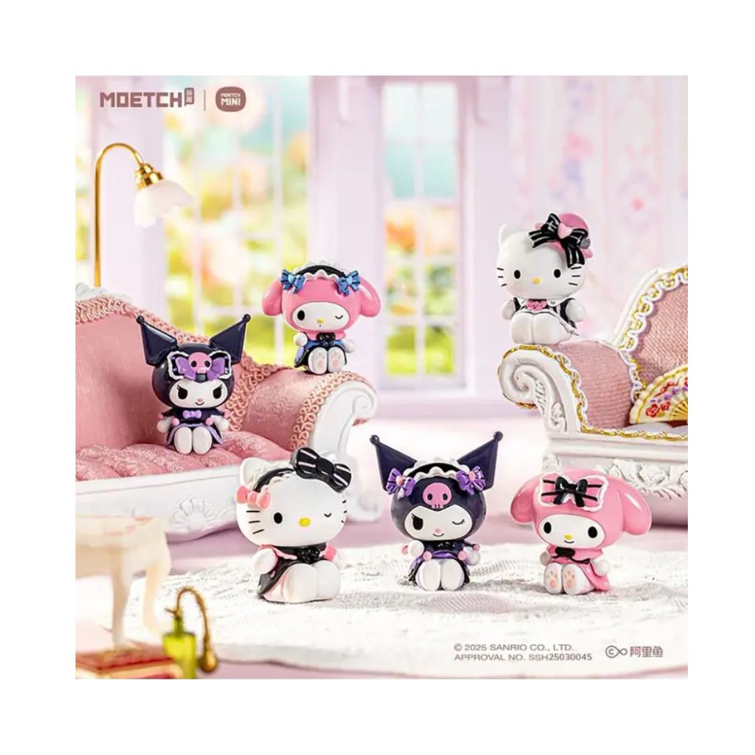 ادخل عالم الأناقة واللطافة مع صندوق المفاجآت لشخصيات سانريو من سلسلة فتاة الدانتيل الحلوة مويتش بين! يحتوي كل صندوق مفاجآت على شخصية سانريو مصممة بشكل جميل ترتدي زيًا مستوحى من الدانتيل اللطيف، يمزج بين الموضة الحلوة وسحر الكاواي. مثالي للمحبين، الجامعين، وأي شخص يعشق عالم سانريو السحري من اللطافة.